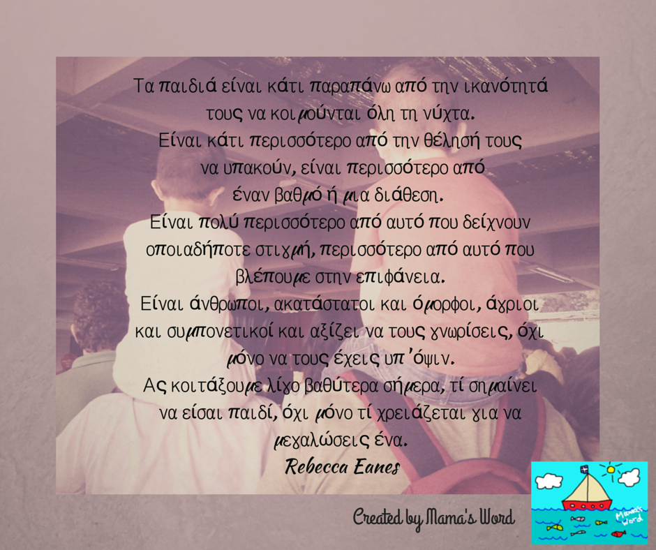 Μην ξεχνάμε ότι σε αυτή την προσπάθειά τους, έχουν ένα πρότυπο, εμάς. Θα μάθουν να ρυθμίζουν τα συναισθήματα και την συμπεριφορά τους, βλέποντας εμάς.